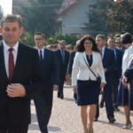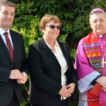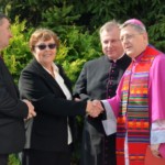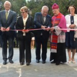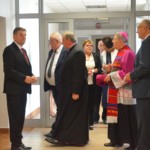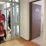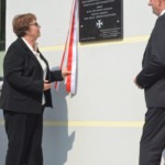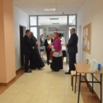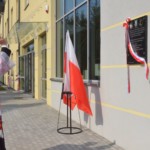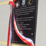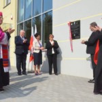 Po zakończonej mszy wszyscy udali się w pochodzie na plac szkoły, gdzie nastąpiło uroczyste odsłonięcie tablicy pamiątkowej poświęconej Patronowi Szkoły przy budynku internatu. W ten sposób została także uczczona 100. rocznica odzyskania  przez Polskę niepodległości. Ksiądz biskup poświęcił również budynek internatu, który po modernizacji w tym roku szkolnym został oddany do użytku.