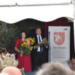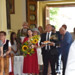 W części oficjalnej wydarzenia Starostowie Dożynkowi- pani Katarzyna Krawczyk oraz pan Janusz Mazurkiewicz– przekazali gospodarzom dożynek chleb z tegorocznych zbiorów, którym Burmistrz Miasta i Gminy Narol Grzegorz Dominik oraz Starosta Lubaczowski Zenon Swatek częstowali uczestników święta.  Po okolicznościowych przemówieniach gospodarzy oraz Przewodniczącego Rejonowej rady w Jaworowie Mykoły Romaniuka, wręczono odznaki honorowe „Zasłużony dla rolnictwa”, nadawane przez Ministra Rolnictwa i Rozwoju Wsi za osiągnięcia w dziedzinie rolnictwa.  W tym roku otrzymali je rolnicy: pan Jan Lasota, pan Krzysztof Krasoń, pan Czesław Mańczak oraz pan Jan Nowak.