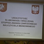 W dniu 20 sierpnia 2021 r. w Starostwie Powiatowym w Lubaczowie odbyło się uroczyste wręczenie aktów nadania stopnia awansu zawodowego nauczyciela mianowanego. W wyniku postępowania egzaminacyjnego przeprowadzonego przed komisją powołaną przez Zarząd Powiatu w Lubaczowie, 6 nauczycieli ze szkół prowadzonych przez Powiat Lubaczowski zdało egzamin, uzyskując tym samym stopień nauczyciela mianowanego.