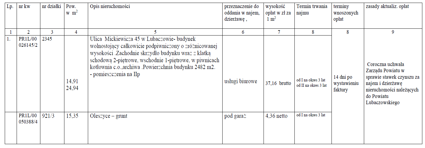 i Uchwały Nr XXVI/157/2017 Rady Powiatu w Lubaczowie z dnia 30.03.2017 r. w sprawie zasad gospodarowania nieruchomościami stanowiącymi własność Powiatu Lubaczowskiego